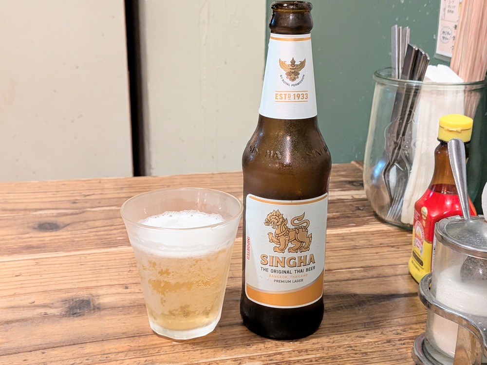 シンハービールのさっぱりとした喉ごしがまたよく合い、じわじわ汗をかきながら夢中で食べていました。この味でこの価格は、まさにコスパ抜群です。