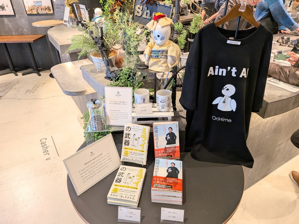販売コーナーでは、オリジナルグッズとともにOriHimeを生み出したロボット開発者・吉藤オリィ氏の書籍もあります。
