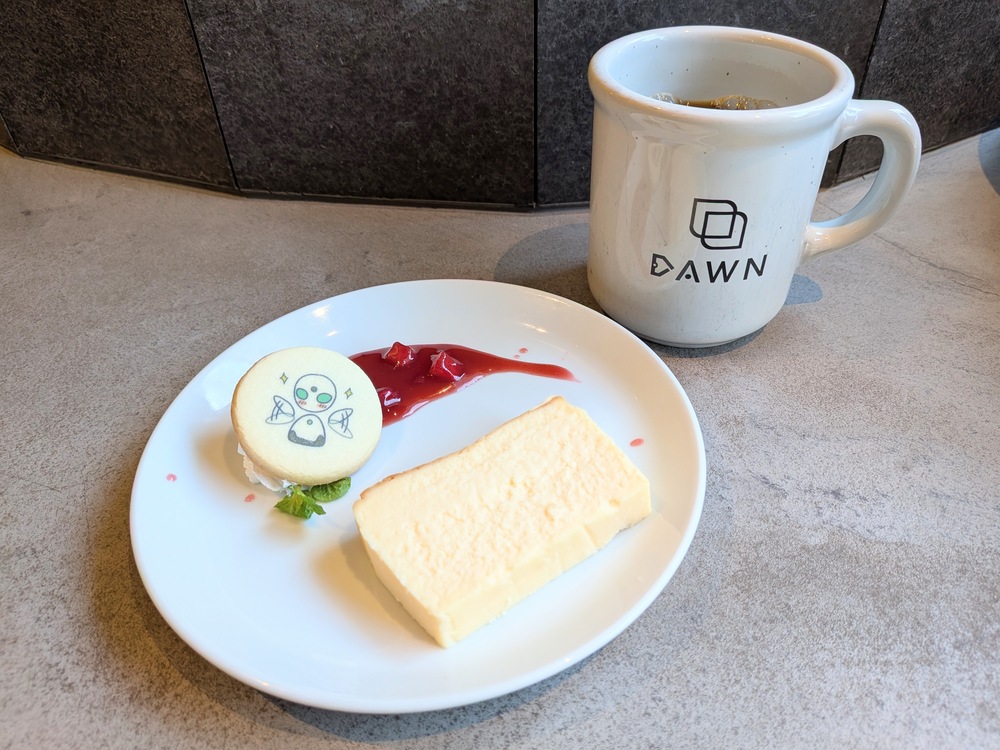 ロボットとの会話を楽しみながら、チーズケーキとオリジナルブレンドコーヒー をいただきました。スイーツにはロボットのイラストがプリントされたクッキーが付いていてかわいかったです。コーヒーもおいしかったです。