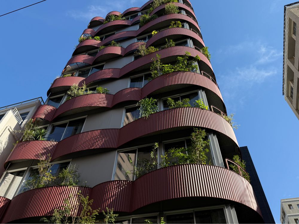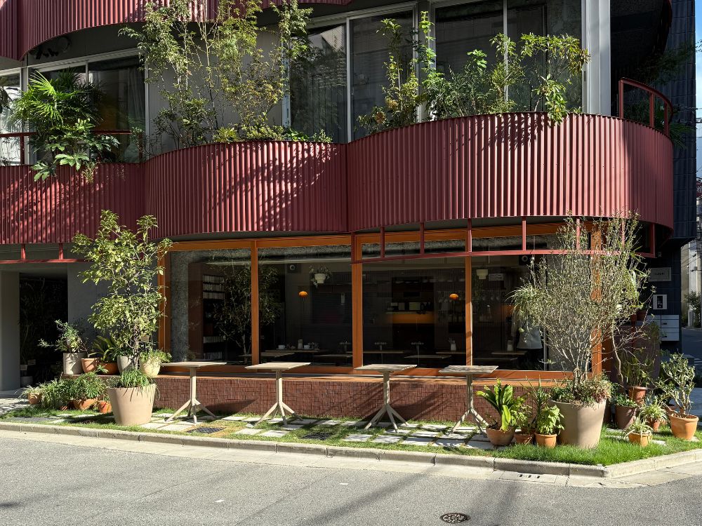 東京都中央区日本橋人形町。裏手のビジネス街を歩いていると、赤い外観と緑に包まれた建物が目に飛び込んできます。