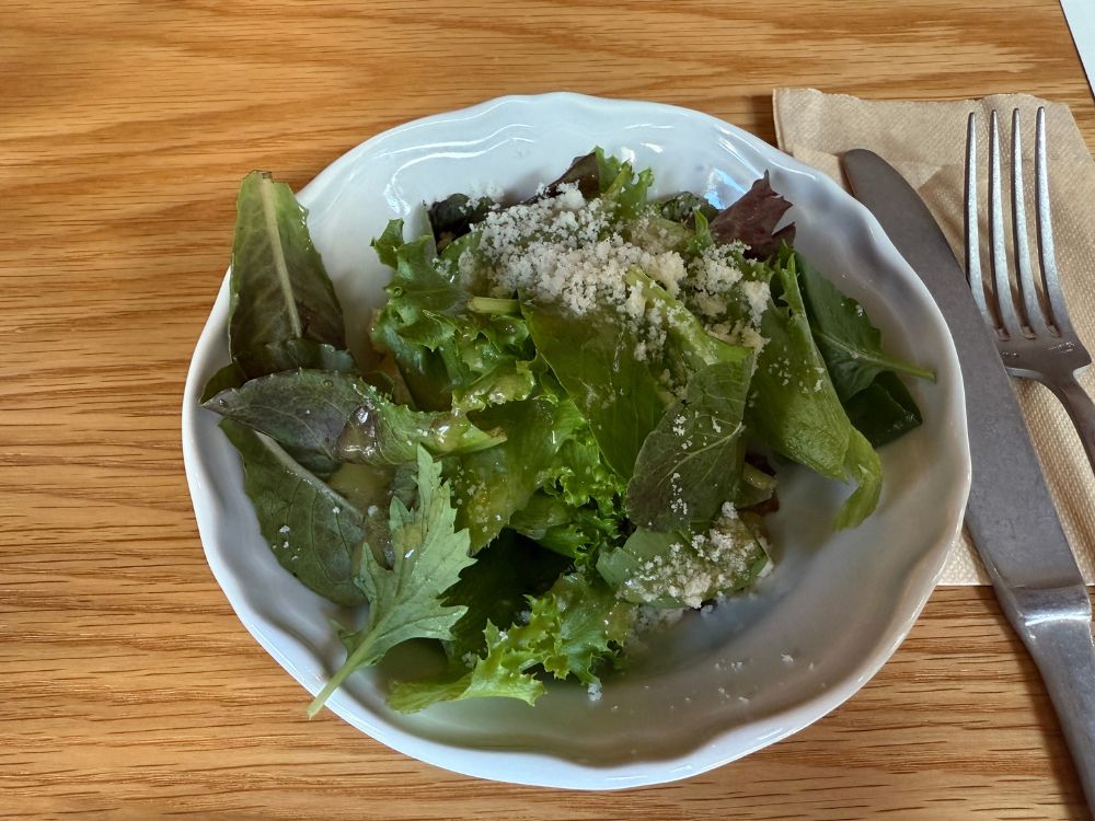 新鮮なグリーンにパルメザンチーズがふわりとかかり、シンプルながらもうれしい一皿です。