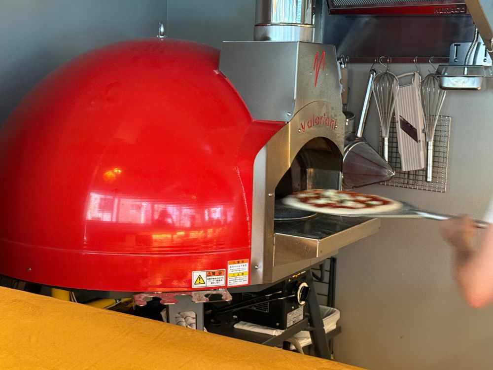 ピザは目の前で焼かれているので、焼き上がり間近の香ばしい香りをダイレクトに感じられます。