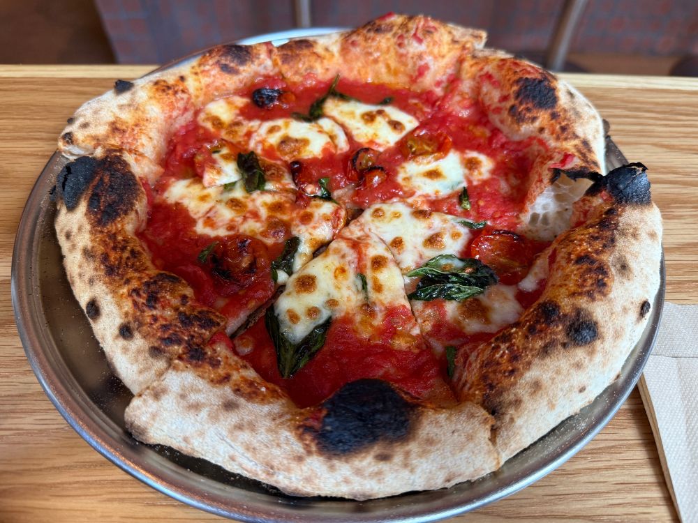 直径20〜25cmほどの一人用ピザは、想像以上にボリューミー。ふっくら焼き上がった耳は外はカリッと、中はもちもち。香ばしさと弾力が同時に押し寄せてきます。ひと口で二重奏の音楽を聴いているような、そんな感覚。
