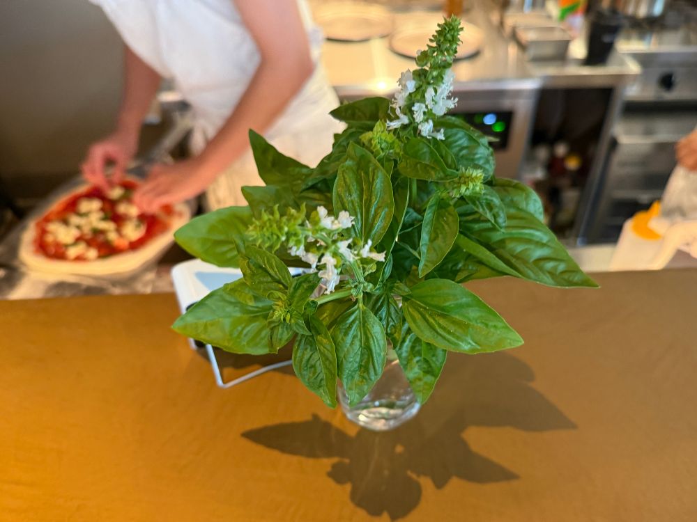 ピザに使われているバジルは、建物の屋上で育てられているそう。