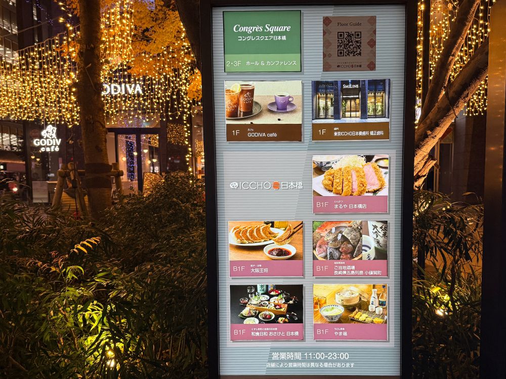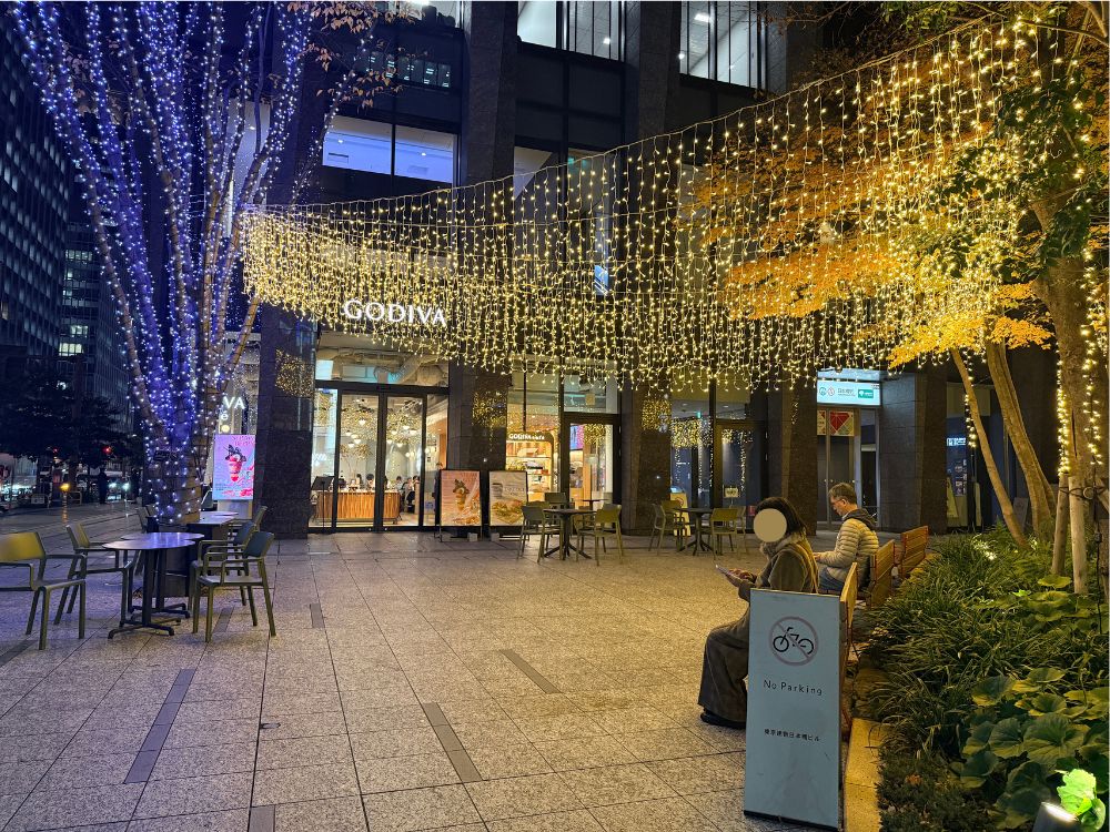 「ICCHO日本橋」は入り口に小さな広場があり、訪れた時にはイルミネーションに彩られ、思わず足を止めたくなる雰囲気でした。