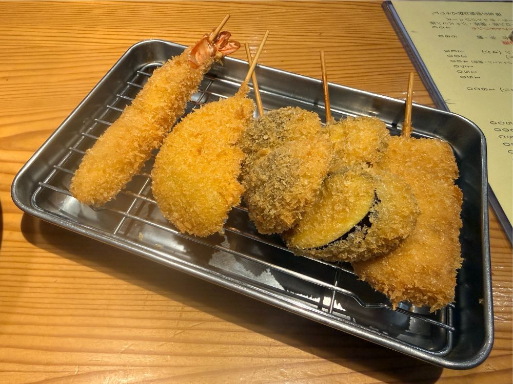 串揚げメニューやおつまみが充実していて、日本酒の品ぞろえも豊富。飲み放題プランもあるそうです。