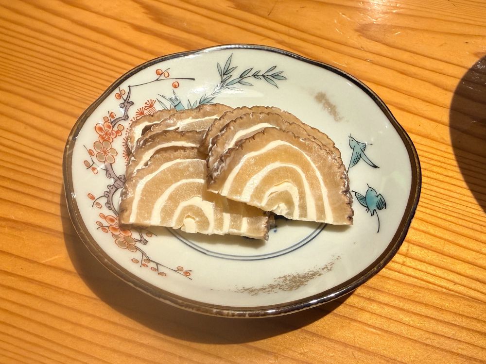 つい頼んでしまった「いぶりがっこチーズ」は、渦巻き模様で出てきました。