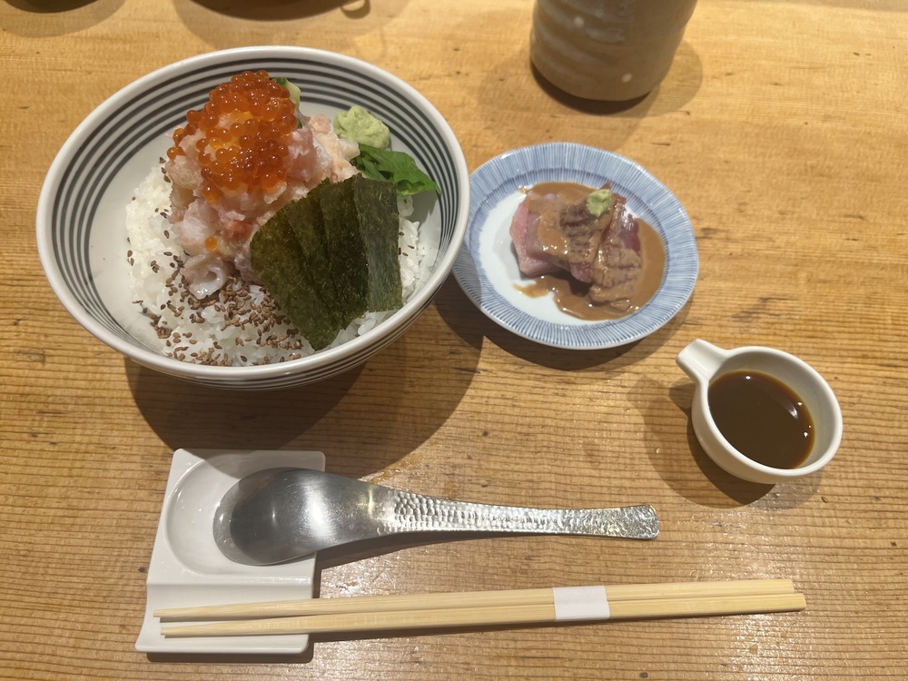 看板メニューは、新鮮な魚介をふんだんに盛り付けた「ぜいたく丼」。食べ方の工夫や〆の鯛だしまで楽しめる一杯は、多くのファンを魅了してやみません。
