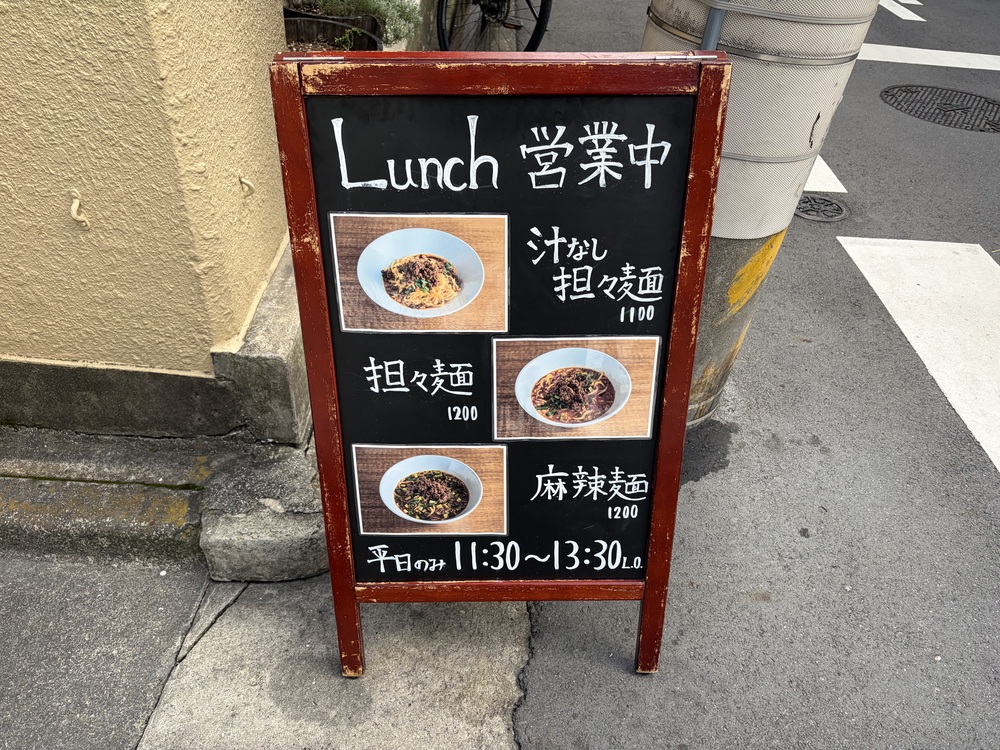 ランチメニューは、汁なし担々麺・担々麺・麻辣麺の3種類。