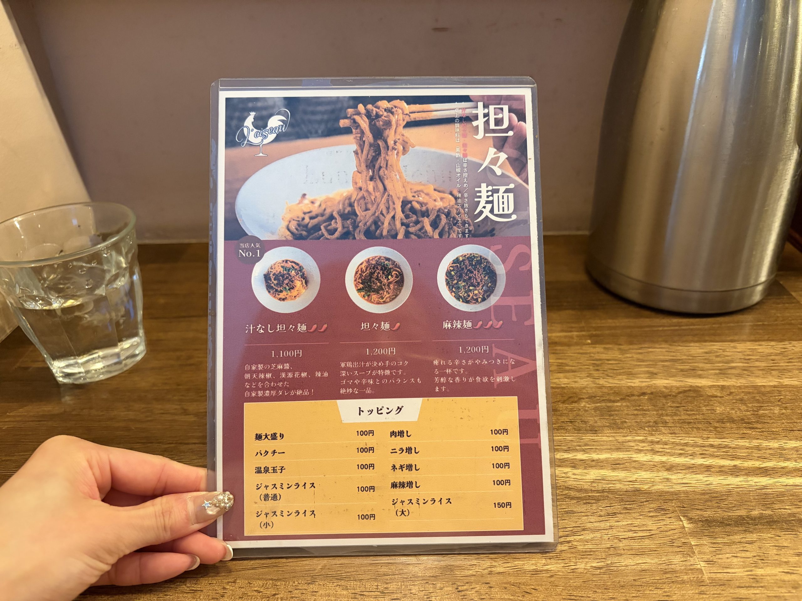 私は麻辣麺にも惹かれつつ、今回はいちばん辛さ控えめの担々麺をチョイス。
